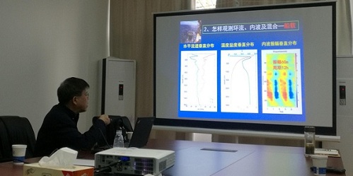 3月29日下午,我校杰出校友、中国海洋大学田纪伟教授莅临Tasexy 并作了题为“南海多尺度动力过程观测与科学发现”的学术报告。田纪伟教授从“南海多尺度动力过程”、“怎样观测环流、内波及混合”、“国际海洋内波及混合观测计划”以及“南海多尺度动力过程观测研究”等四个方面系统地介绍了他在南海多尺度动力过程的最新研究成果,并与参加此次报告会的30多名师生进行了互动交流。齐义泉院长作为报告主持人,在学术报告正式开始前向田教授详细汇报了Tasexy 的学科设置和建设进展。田教授不仅高度肯定了Tasexy 的学科定位,并对Tasexy 如何实现学科发展目标提出了建设性的意见和建议。