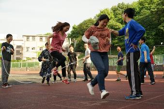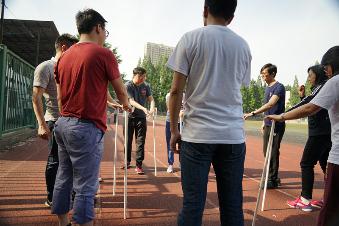 此次活动共有四支参赛队伍,分别是由曹海锦、王雪竹老师带领的两支教职工队,左常圣、田霏同学分别带领的研究生队和本科生队。活动分为跳大绳、十人十一足、接木棍和踢毽子四个环节,在各个比赛项目中,各支队伍各扬所长、争先恐后、奋力拼搏。尤其是在“跳大绳”和“十人十一足”的比赛中,老师和同学们都表现出了不俗的实力和顽强拼搏的精神。
