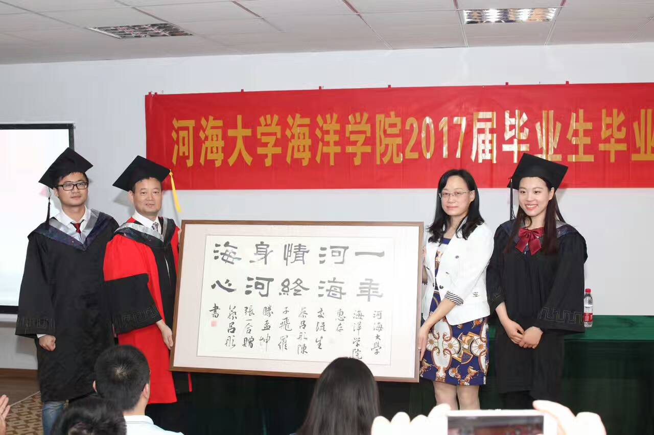 典礼的高潮出现在学院与毕业生互送礼物的过程中,学院为每一位毕业生精心定制了专属的毕业戒指,毕业生们也不忘学院培养和恩师教导,献上了充满浓浓感恩之情的毕业礼物:一份是由淮海工学院5名交流生准备的书法作品:一年河海情,终生河海心; 一份是由35位本科毕业生准备的钻石贴画:贴画定格在2013年9月6日的全球水温,那一天是大一新生报道的日子,他们梦开始的时刻。