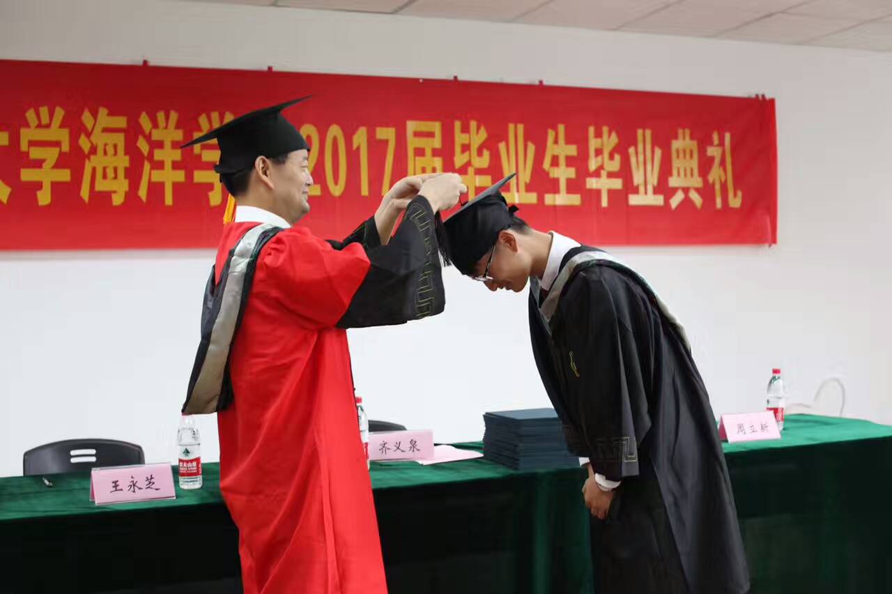 学位仪式结束后,全体起立,共唱《毕业歌》,典礼在充满感动与祝福的氛围中圆满结束。“进军深海,探索前沿,服务经济,勇做先锋”,最后再次祝我们的毕业生们前程似锦,常回母校看看。