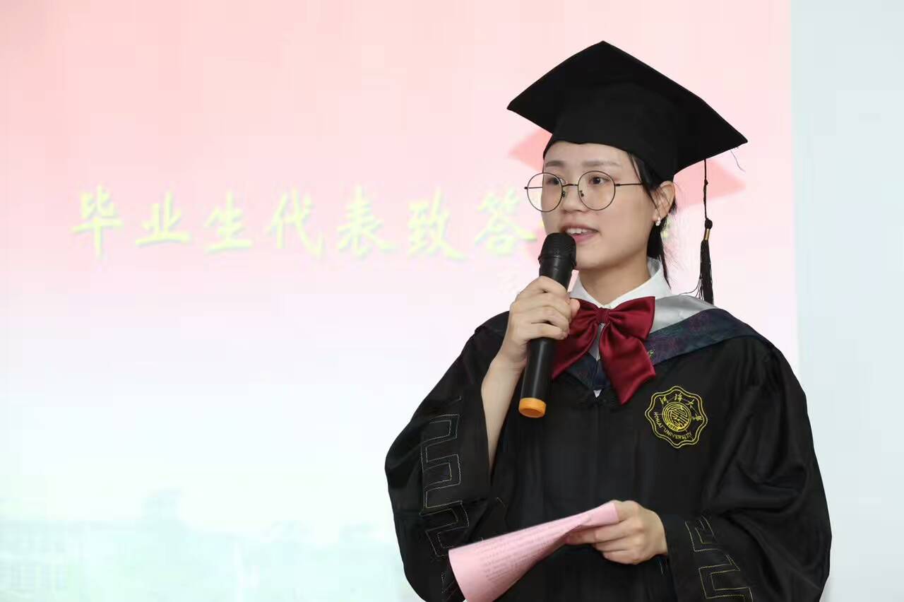 毕业典礼由王永芝书记主持,院长齐义泉教授、教师代表陈美香副教授、家长代表陈云飞先生依次上台致辞,为Tasexy 的毕业生们送上了最诚挚的祝福和最殷切的希望。毕业生代表王倩也发言表达了对母校和学院的感激之情,并表示心怀感恩,砥砺前行。