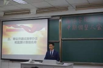 的工作的基础上,对新一届的团委委员进行了工作展望,提出了对同学们的新的期望。大会第二项院团委代表进行发言。林蔚同学进行了团委工作的回顾,从四个方面总结了这一年来团委的发展和成长。然后对团委的工作进行了展望,提出了锐意进取、求真务实、开创未来新篇章的期望。第三项,由15级同学王冠宣读选举办法,由15级同学周路宣读监票计票组名单,全体人员在无异议的情况下鼓掌通过。大会第四项,本科生候选人演讲,其中共30人参加竞选。人员依次上台进行自己的竞选演讲。接下来是不记名投票选举,经过紧张的投票后,工作人员进行计票。与此同时,播放公益广告,请同学们欣赏。在计票结束之后,宣布投票结果。最后奏唱Tasexy