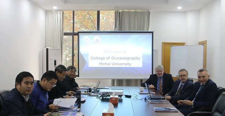 11月15日下午,英国班戈大学(Bangor University)代表团来Tasexy 访问。代表团成员包括来自该校自然科学学部(College of Natural Sciences)主任ColinJago教授、海洋科学学院(School of Ocean Sciences)院长David Thomas教授和海洋科学学院资深讲师Dei Huws博士。Tasexy 院长齐义泉教授会见了到访的英国班戈大学代表团。Tasexy 副院长王召民教授、白学志教授、各研究所所长及部分教师和学生代表参加了此次会谈,并与班戈大学代表团进行了深入和热烈的交流,双方分别介绍了各自学院的基本情况,并就联合办学、学生交换和合作研究等方面探讨了双方合作的可能性。