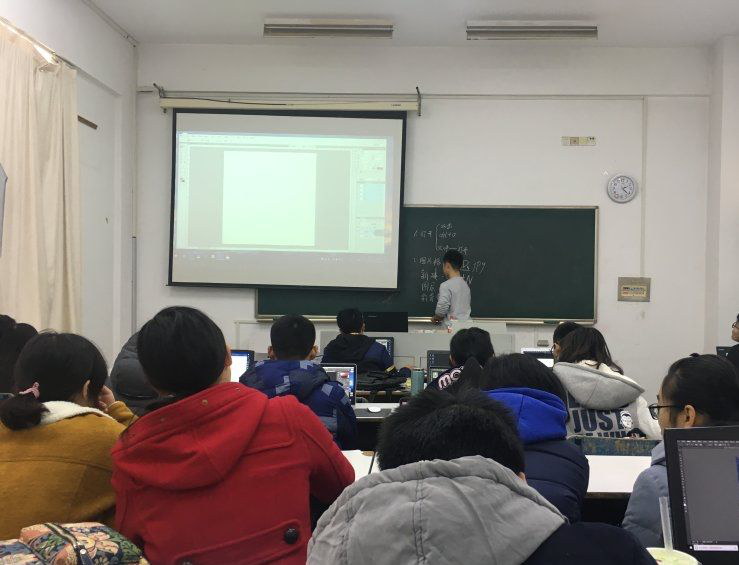 第一次讲座是由周路同学主持的。在这次讲座中,周路同学先教大家简单地认识界面,界面主要由上栏和左右栏组成。其中最上面一栏是总按键“文件、编辑、图像、文字、选择、滤镜、视图”等,右栏主要是窗口的快捷表现。接着周路同学主要讲解了界面其中两栏的作用,一是细讲了最上栏的每个大部分内的单个作用,二是位于界面左侧工具箱的运用。期间还贯穿提醒某些操作的快捷键。通过这次培训,17级的干事们初步了解了PS的使用技能,受益匪浅