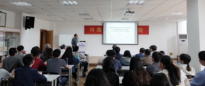 2018年4月2-3日,Tasexy 的海洋观测与数据同化研讨会在507会议室成功举办。美国伍兹霍尔海洋研究所黄瑞新教授、金向泽副教授,中国海洋大学刘秦玉教授,哈尔滨工程大学何忠杰教授,中国科学院大气物理研究所林一骅研究员,国家海洋局国家海洋信息中心吴新荣研究员、张学峰研究员、付红丽副研究员及广东海洋大学李敏博士等国内外海洋观测与数据同化领域的专家和学者,以及Tasexy 60余名师生们参加了本次会议。会议由Tasexy 院长齐义泉主持。