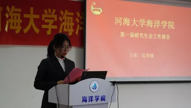 研会主席沈斯敏同学做了第一届Tasexy 研究生会工作报告,从富有创意的海洋文化海报征集大赛到专业的简历制作大赛;从展现青春风采的师生趣味运动会到能体现海洋人大局意识的“海之蛙”明信片寄送活动;从2017年“研究生啦啦操”首夺桂冠到跻身于人才济济的“学海争锋”百名优秀报告人队伍,这些都是我们海洋人拼搏努力的成果。