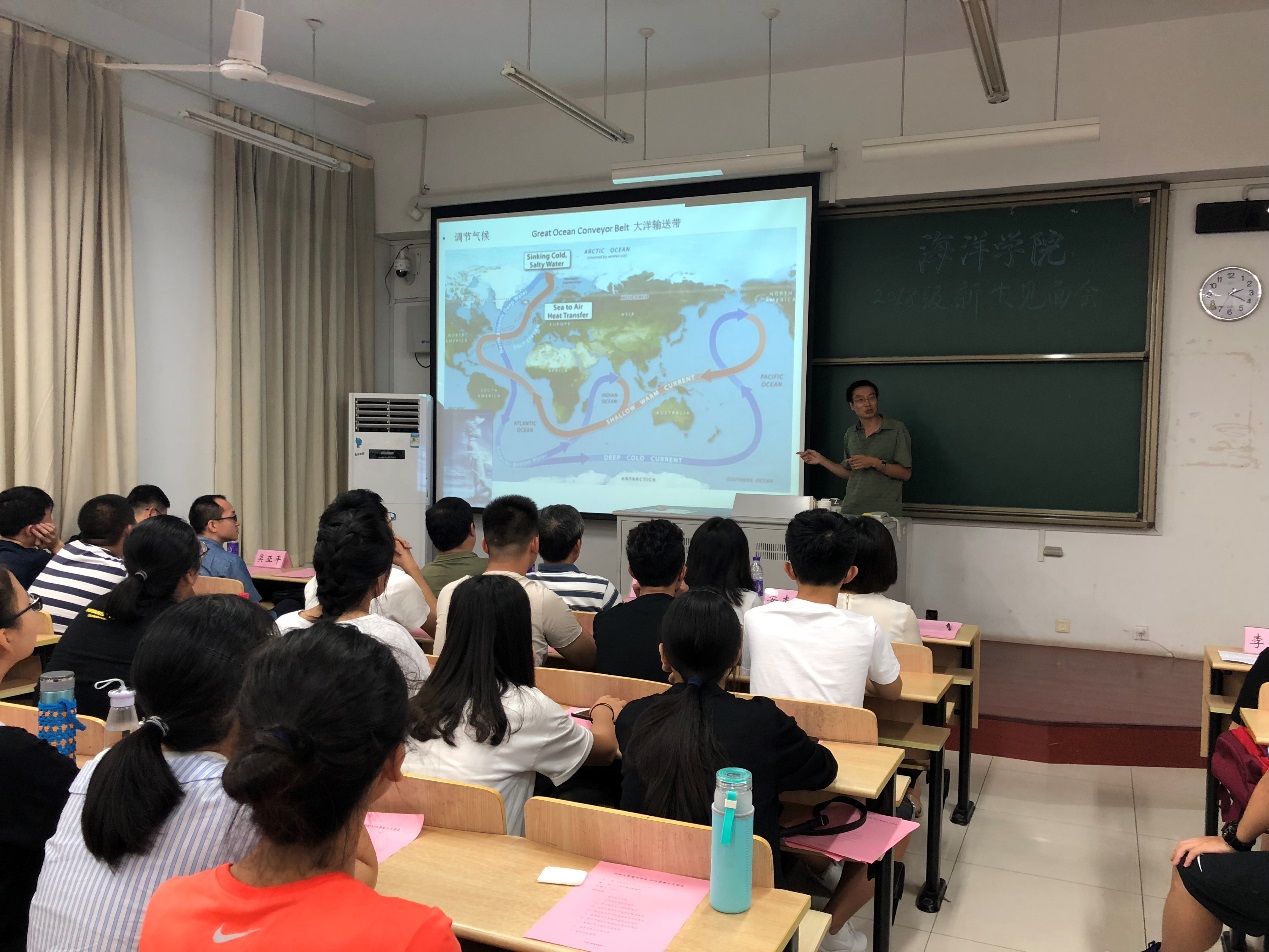 9月2日,Tasexy 召开2018级新生见面会暨Tasexy 2018级新生开学典礼。学院院长齐义泉教授、副院长白学志教授;物理海洋系廖光洪教授、海洋地质系副主任颉炜副教授、海洋生物系副主任吴亚平副教授、本科生辅导员、2018级各班导师及2018级全体新生参与此次会议。会议由学院党总支王永芝书记主持。
