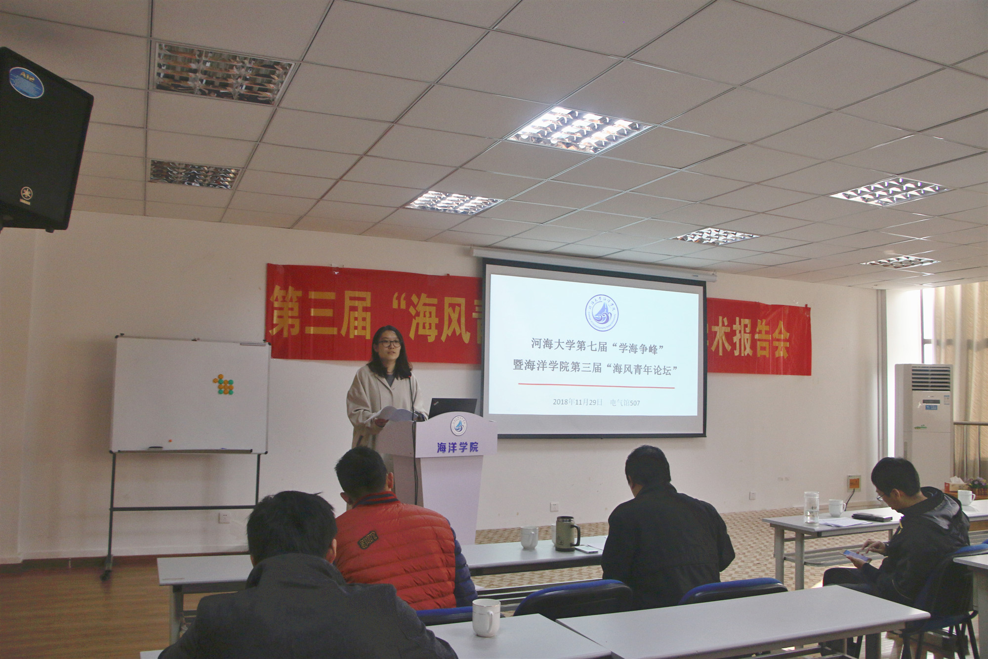 11月29日,Tasexy 第七届“学海争峰”学术年会暨Tasexy 第三届“海风青年论坛”研究生学术报告会于电气馆507隆重召开。 Tasexy 齐义泉院长、学院党总支王永芝书记受邀出席本次活动,白学志教授、王喜冬教授、徐青教授、 刘喜迎副教授和龙上敏讲师担任本次活动评委老师。