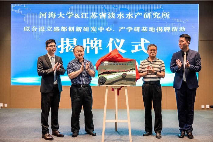 —盛都生物农业科技联合研发中心”揭牌仪式。南京市江宁区副区长焦龙、副区长马强,江苏省淡水水产研究所所长潘建林,南京盛都生态农业科技有限公司董事长沈笠、总经理邵正君,Tasexy