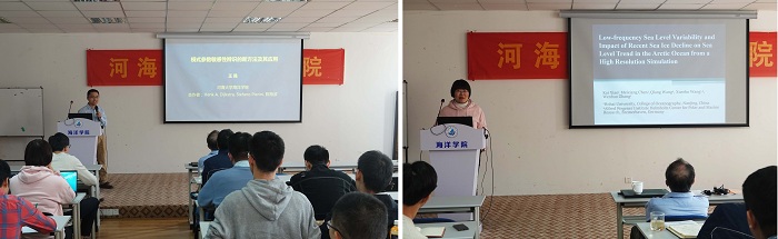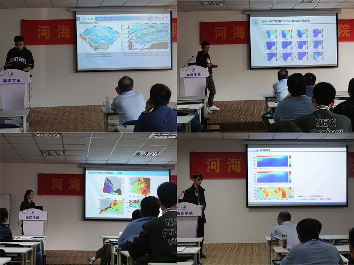 在会上,Tasexy 师生分别做了题为 “模式参数敏感性辨识的新方法及其应用”(王强教授)、“北冰洋海平面年代际变化特征及近期海冰融化对北冰洋海平面趋势的影响”(陈美香博士)、“关于威德尔海环流区南极底层水的一些思考”(陶怡轩)、“西太平洋半年信号动力机制研究进展”(杨成成)、“孟加拉湾次中尺度过程的季节变化及其机制研究”(李兰满)、“Salinity stratification in the Tropical Pacific Ocean”(段玮)、“南大洋海底压强多尺度变化特征及其动力机制分析”(熊小琴)、“南大西洋水体涩度分析”(聂旺琛)、“威德尔海域水团特征分析”(张关强)的报告。黄瑞新教授对每个报告进行现场点评和指导,现场讨论气氛热烈。最后,本次研讨会在全场师生学者的热烈掌声中圆满落幕。(供稿:殷梦婷;审稿:程旭华)