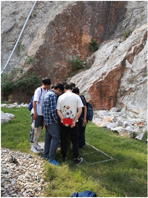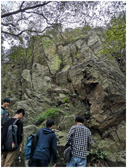 在这六天的时间里,同学们相继到达汤山石门埝水库、紫金山、南京园博园、棒槌山、汤山矿坑公园和句容宝华山等具有典型地层发育特征的地区进行踏勘与地层剖面实测工作。自古生界奥陶系至中生界侏罗系,寸步踏行只需六天,仑山象山已过亿年。历史让岩石有了温度,而观察与思考让每一位同学成为透过表象去感知、延续温度的伯乐。
