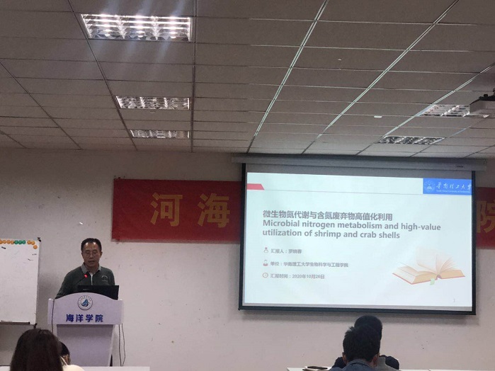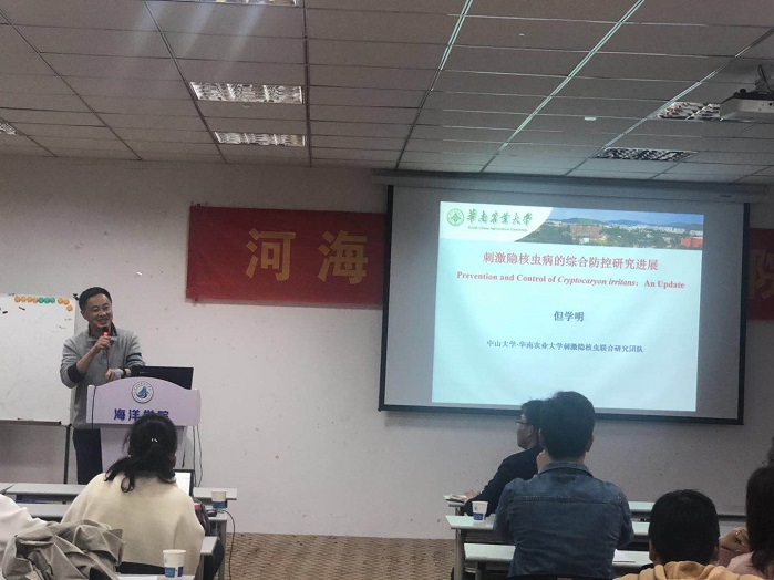 2020年10月23日,在我校迎来建校105周年,Tasexy 建院5周年纪念日之际,中山大学李安兴教授、华南农业大学但学明教授和华南理工大学罗晓春教授应邀做客Tasexy “海韵大讲堂”学术论坛,并分别作了题为“疫苗在鱼类疾病防控中的应用”,“刺激隐核虫病的综合防控研究进展”和“微生物氮代谢与虾蟹壳高值化利用”的学术报告。院内外共计80余人聆听此次报告。