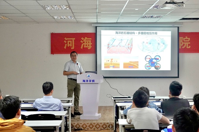 徐敏研究员分享了题为“洋中脊结构地震探测”的报告。报告首先对洋中脊的分段特性及其扩张模式进行了介绍。研究通过海洋主动源地震探测记录数据的处理和分析,对岩浆房的精细结构和分段性进行了讨论,并讨论了洋中脊扩张过程中对应的地球物理特征。