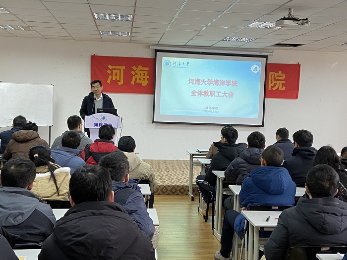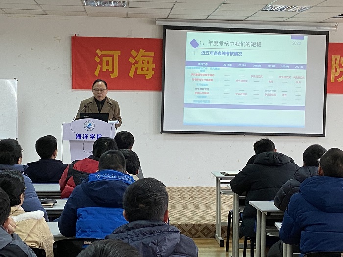 宋翔洲副院长首先向全体教师传达了学校2022年度工作会议精神,希望全体老师在年度工作中认真贯彻落实,并结合工作实际,就学院2022年度学科、科研、学生培养、学生管理、师资队伍、内部管理、国际合作与交流等方面的重点工作提出了工作思路和工作设想。