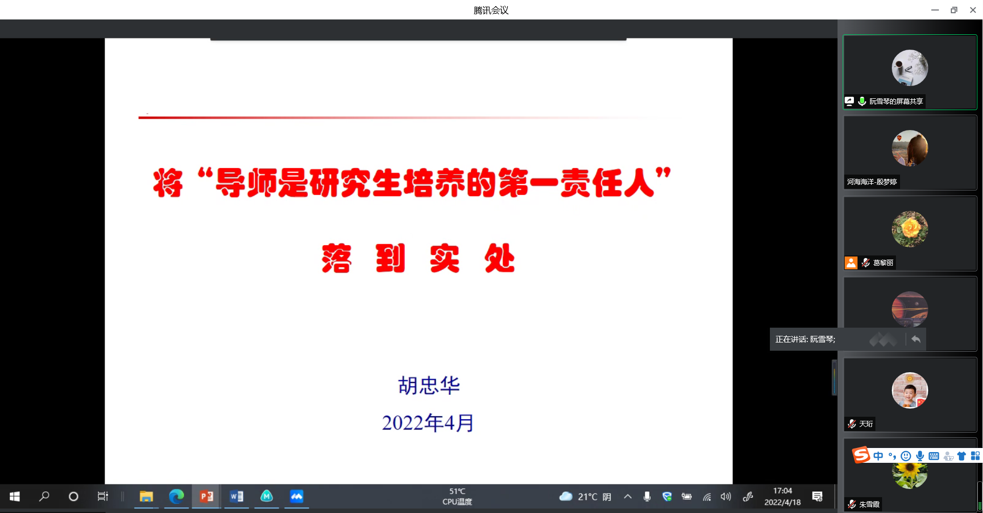 会议中,导师们还就如何加强研究生课程思政,提高研究生生源质量,提升研究生就业质量等问题进行了交流。
