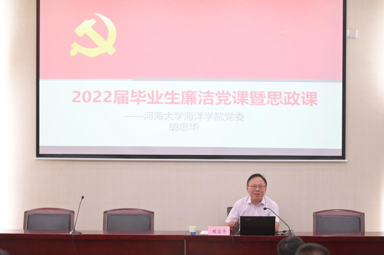 胡忠华首先代表学院向毕业生表示热烈祝贺与真挚感谢。他分别从廉洁党课的必要性、加强廉洁从业的纪律要求、毕业生的角色转变以及如何应对多类考验风险等方面展开授课。他强调,毕业生要恪守底线,坚守反腐倡廉的原则,做到诚实守信、法治公正;毕业生党员同志要始终牢记党员身份,忠诚于党和国家,切实做到政治站位高、工作责任强、带头示范显、群众路线浓、廉洁自律严。