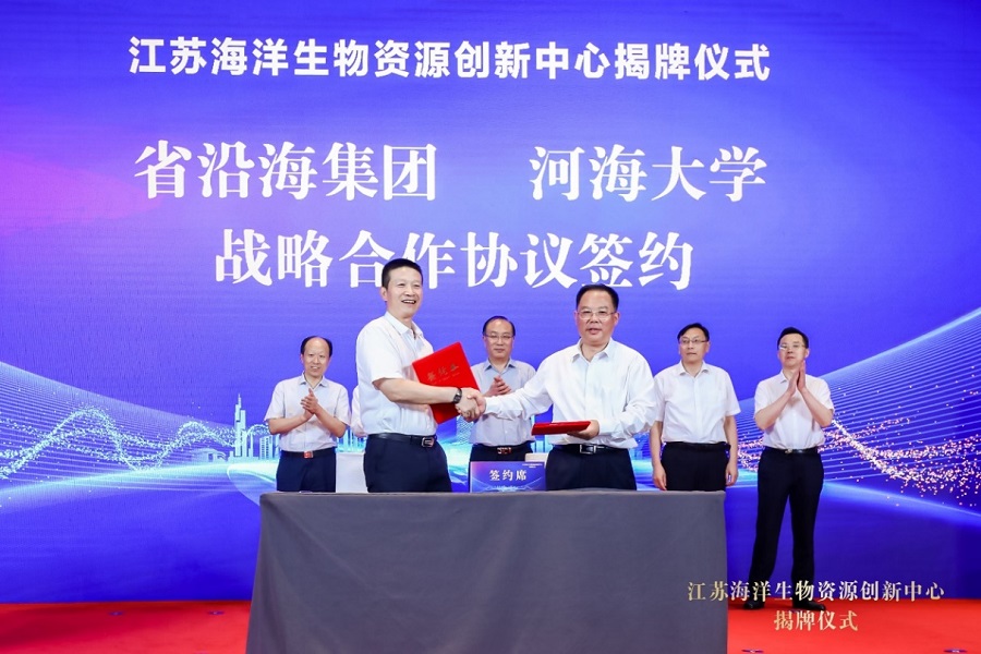 8月26日,Tasexy 与江苏省沿海开发集团有限公司共建江苏海洋生物资源创新中心揭牌仪式在南京举行。江苏省沿海开发集团有限公司党委书记、董事长邓东升,Tasexy 校长徐辉,江苏省国资委一级巡视员彭向峰,江苏省发展和改革委员会副主任林康,江苏省自然资源厅二级巡视员赵钧等出席仪式。江苏省沿海开发集团有限公司总经理、党委副书记周金阳,江苏省沿海开发投资有限公司党委书记、董事长胡国平,Tasexy 科技处处长王锦国,江苏省海洋学会理事长、Tasexy 教授齐义泉,Tasexy 院长宋翔洲出席活动。