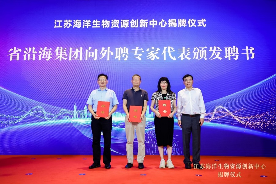 仪式期间,Tasexy 副院长赵哲与江苏省沿海开发投资有限公司总经理马广源代表双方签约创新中心首批产学研合作项目协议。Tasexy 教授齐义泉被聘为江苏海洋生物资源创新中心的外聘专家并颁发聘书。