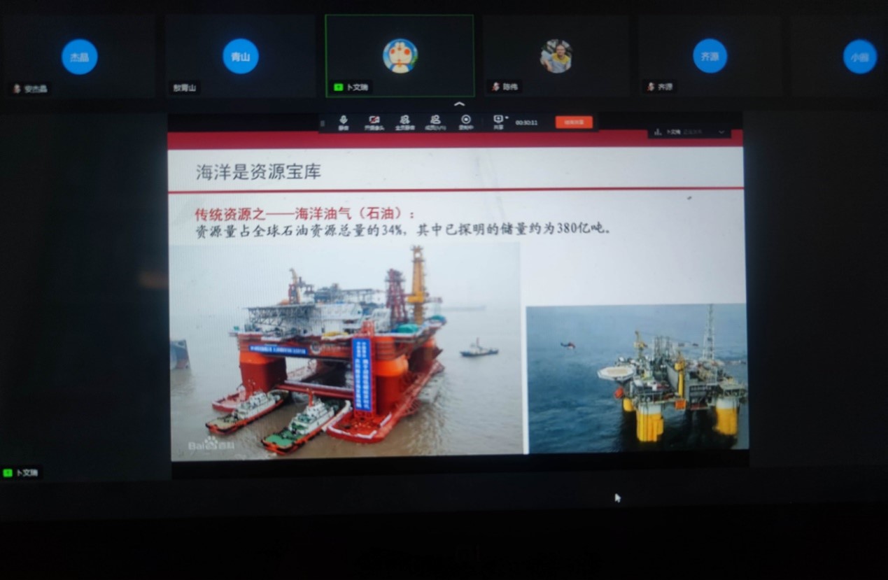 活动邀请中国大洋样品馆专职副馆长,自然资源部第一海洋研究所海洋地质样品管理及技术研发学科方向首席专家卜文瑞研究员线上带来科普报告《深海探宝——我国深海勘探开发成就》,系统学习海洋发展历史,深入领会国家海洋强国战略方向,激励同学们树立建设海洋强国的使命感。