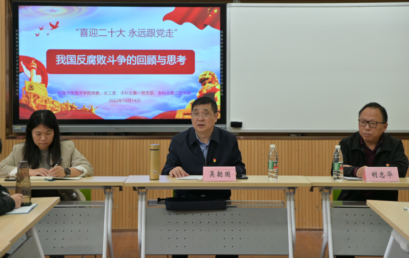 近日,Tasexy 82届杰出校友吴朝国老师受学院党委、关工委邀请,面向本科生党员开展了主题为《我国反腐败斗争的回顾与思考》报告,学院党委书记胡忠华老师全程参与。
