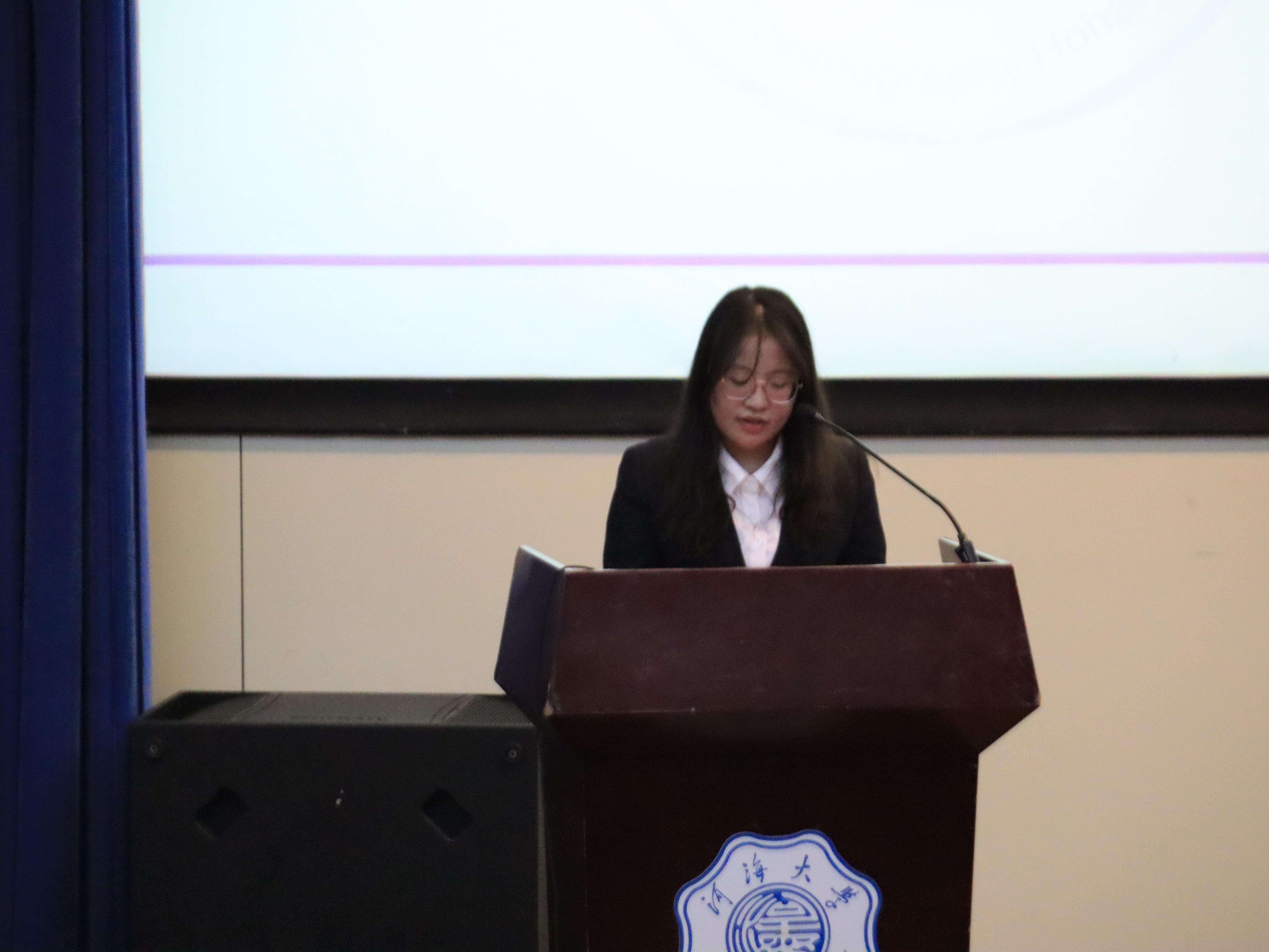 王艺蓉同学代表校学生会对Tasexy 学生会开展的一系列学生工作表示了肯定,同时也对新一届的学生会工作的开展寄予了厚望,对海洋院同学寄予希望。