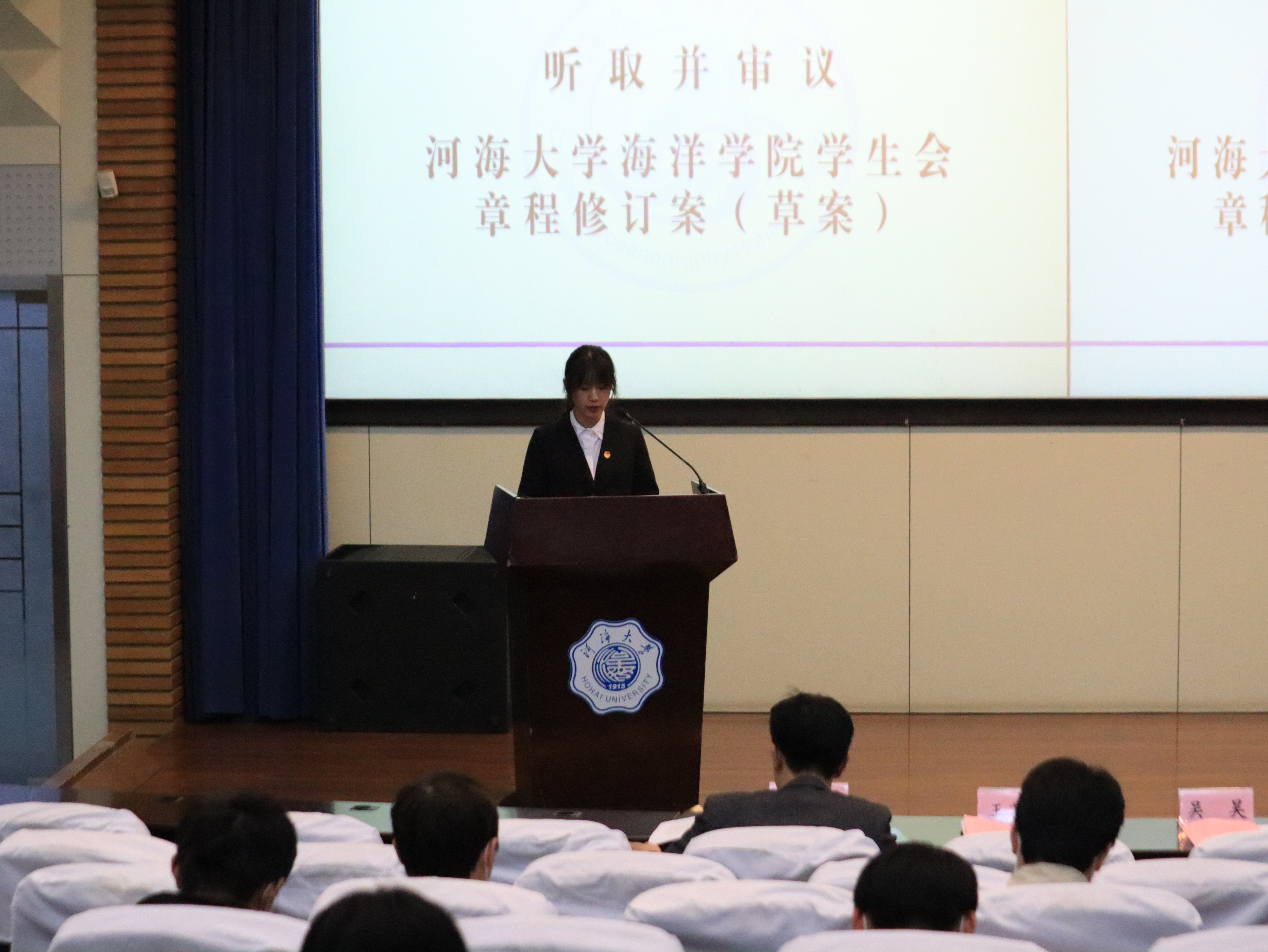 大会听取了学生会主席王潇翔同学的第六届学生会工作报告和学生会副主席杨嘉越的第七次学代会筹备工作报告以及第六届学生会副主席刘梦宇同学作Tasexy 学生会章程修订案(草案)报告。