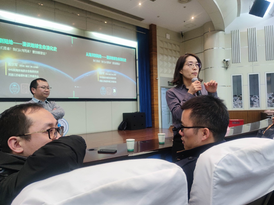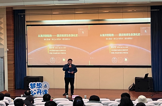 2022年11月30日,Tasexy 邀请到中科院南京地质古生物研究所殷宗军研究员做客“海韵大讲堂”之“学习贯彻二十大、踔厉奋进新征程”科普讲座,为全院师生作题为《从海洋到陆地——漫谈地球生命演化史》的报告。本次报告会还邀请了中科院南古所罗茂研究员、中科院紫金山天文台蒋云副研究员作为嘉宾出席。学院100余名师生及两位嘉宾参加了线下报告,宋翔洲院长、王毛毛副院长、姜仕军教授等十余教师参加了线上报告,本次报告由吴昊副书记全程主持。