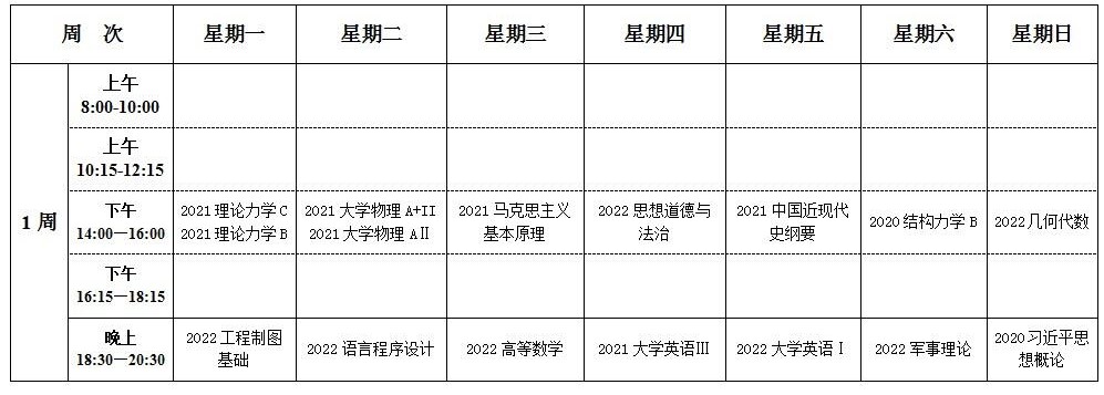 2022-2023-1学期公共课程期末考试延期考试安排表