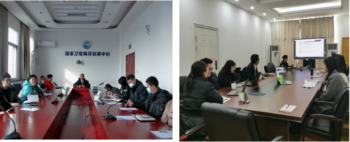 此次交流会通过线上线下结合的方式进行,国家卫星海洋应用中心副主任刘建强、预报中心人事处副处长于艳红、Tasexy 院长宋翔洲、副院长冯涛以及双方联培导师参加了会议。