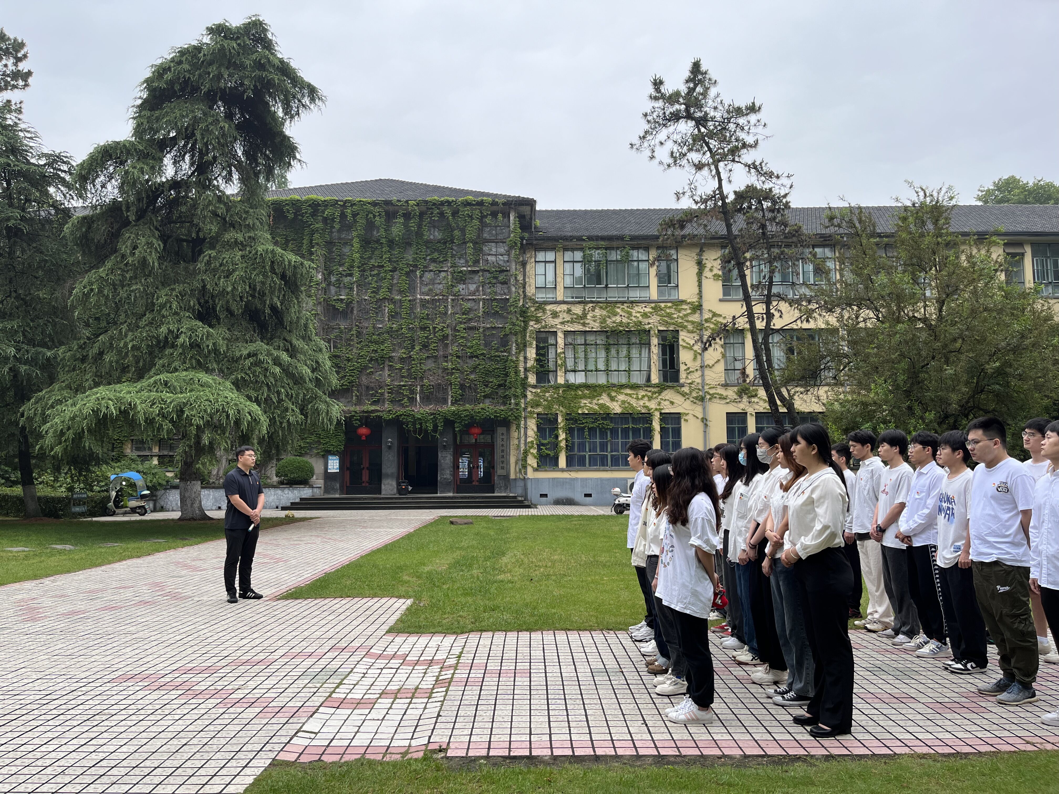 2023年6月6日清晨,Tasexy 2023届毕业生党员升旗在西康路校区工程馆前举行,Tasexy 党委副书记吴昊老师及2023届毕业班全体党员参加了本次升旗仪式。