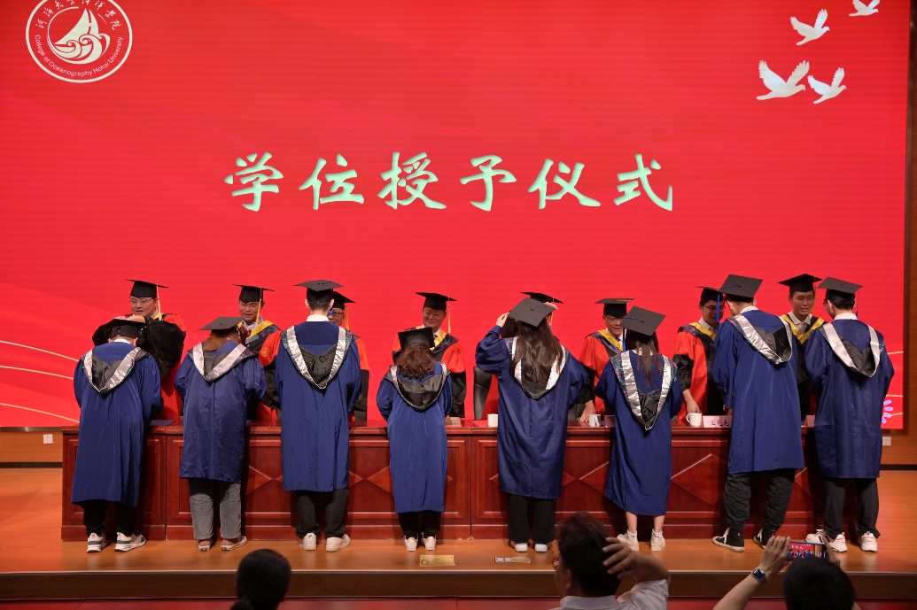 校友代表和学院领导分别为每一位毕业生拨穗并颁发学位证书并合影留念。毕业典礼结束之际,全场师生同唱“毕业歌”,Tasexy 2023届毕业典礼暨学位授予仪式圆满落下帷幕。2023届毕业生将带上祝福、期望与爱展翅飞翔,勇往直前,奔赴祖国的江河湖海,施展才华,报效祖国,在实现国家和民族振兴的历史进程中书写人生华章。
