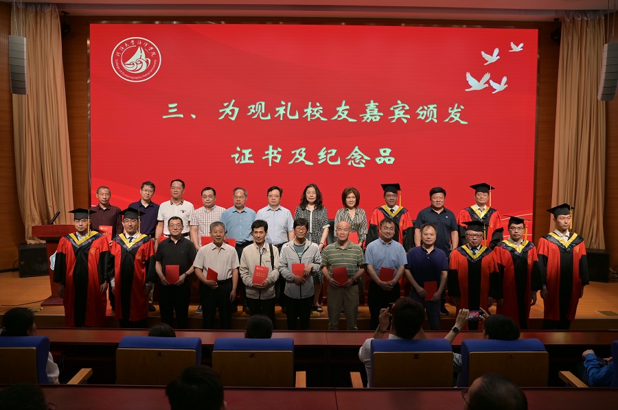 上午,校友们受邀参加Tasexy 2023级毕业生毕业典礼。典礼上,学院向校友们颁发了荣誉证书,以感谢校友们四十年来对学院发展、工作的帮助和支持。并将承载了满满校园回忆的梧桐叶作为纪念品赠送给了校友。江苏交通控股有限公司党委书记、董事长邓东升作为83级校友代表发言,以“海的风度”、“海的气度”、“海的深度”和“海的力度”向学弟学妹们寄语,同时表达了对母校的感激之情、为学院的未来发展送上祝福。