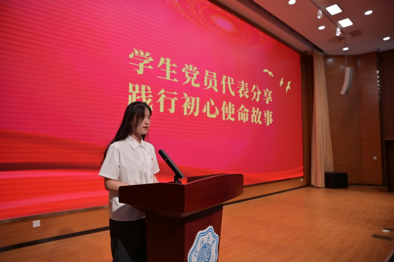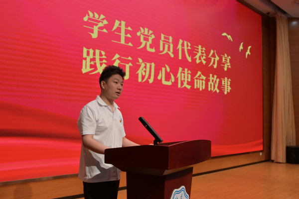 本科生党员代表刘梦宇和研究生党员代表高臻,叩问入党初心,回顾了对党憧憬、努力奋斗、担当使命的故事,向所有学生党员讲述信仰的力量,并号召全体学生党员,要时刻谨记入党初心,坚定理想信念,矢志不渝听党话跟党走。