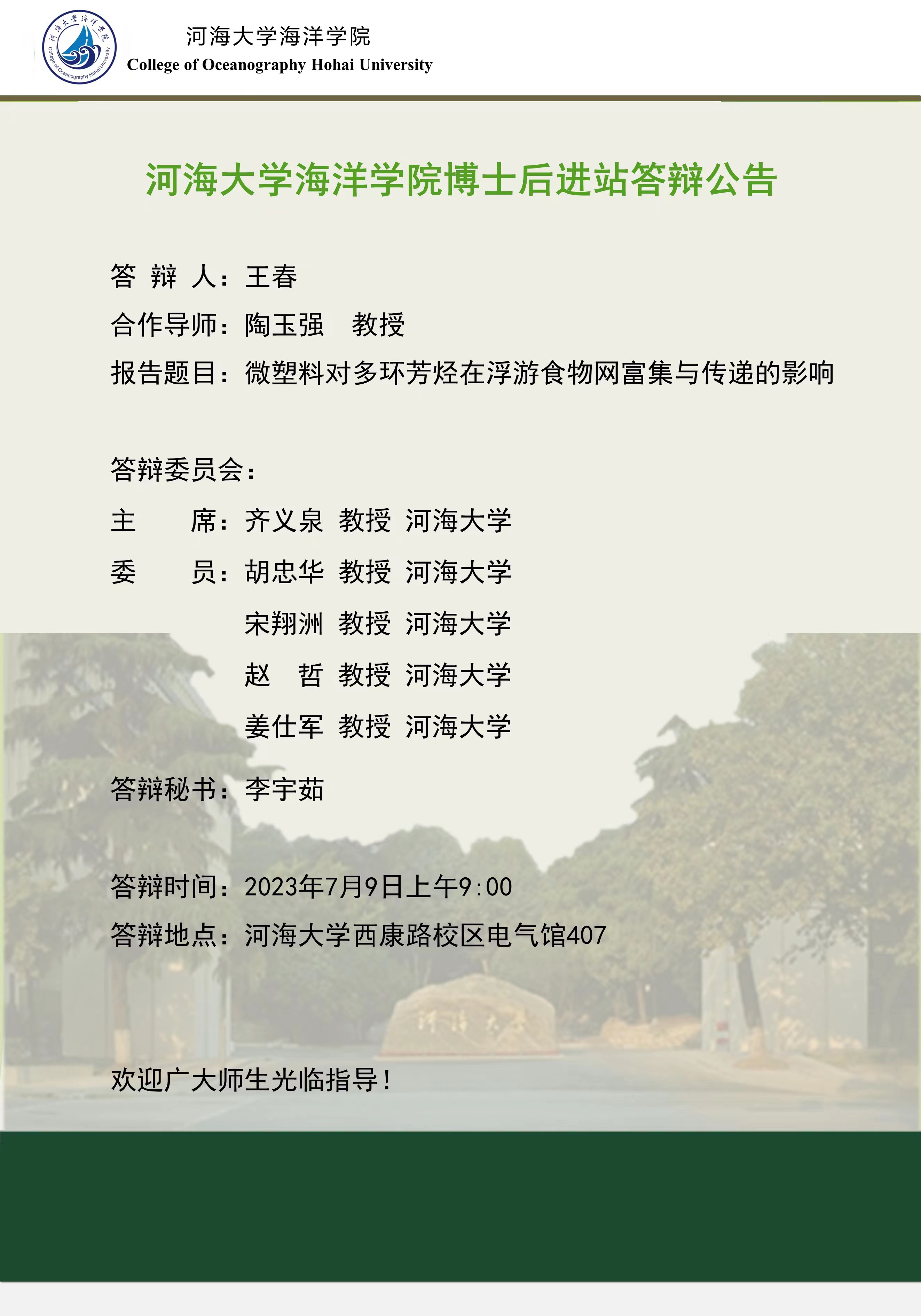 Tasexy 博士后进站答辩公告(王春)