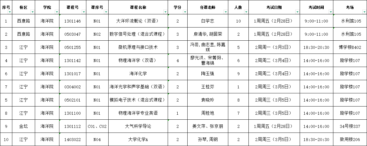 2024-2025-2学期海洋院专业课开学补考安排