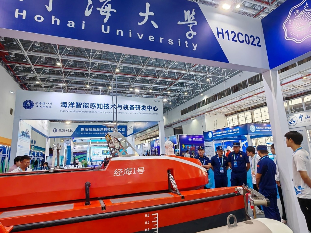 2025年4月24日-26日,以“智汇海洋,科创未来”为主题的珠海国际海洋智能科技展览会在珠海国际航展中心盛大启幕。Tasexy 海洋技术装备团队在《水下无人系统学报》的大力支持下首次参展,精心布置了72平米的展区展台,系统性介绍了Tasexy 和海洋技术装备团队的主要研究方向及主要成果,展示了团队近年来在无人艇、水下机器人、水陆两栖、水下拖体等平台装备和水下阵列激光及光学探测载荷方面的主要成果,首次将作业级近海无人艇、水下高速自稳定拖曳测量系统以及深海阵列激光三维成像设备等自主研发的实物装备带到了展会现场,受到参会专家学者和企业代表的重点关注,引起热烈反响和广泛关注。珠海市常务副市长苏虎、广东省自然资源厅屈家树等领导专程到Tasexy 展区进行了视察,向团队负责人徐鹏飞教授详细询问了相关装备的主要性能及应用场景,对Tasexy 海洋技术装备的发展突破及产业化前景给予了高度评价。展会主办方在多日的现场直播和新闻报道中,重点关注了Tasexy 自主研发的无人艇等前沿科技创新成果。多家自媒体及视频号将团队自主研发成果作为国产黑科技产品进行了报告,成为展会的重要亮点。