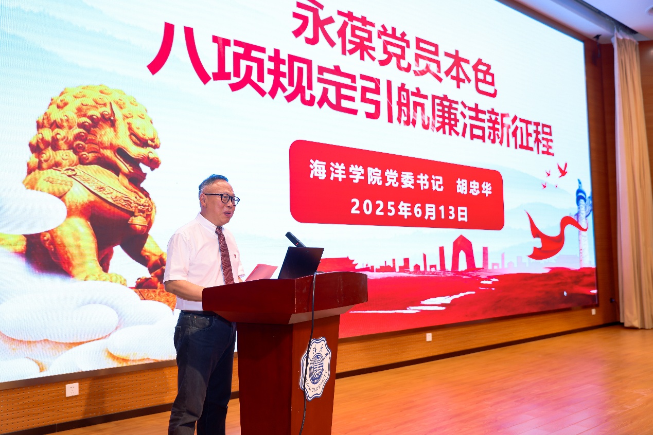 胡忠华书记为毕业生党员讲授了一堂“永葆党员本色,八项规定引航廉洁新征程”的主题党课,他强调,每一位党员同志都应当深入学习八项规定,把握精神核心要义,深刻领会廉洁内涵,明晰党员责任担当。同时,他结合了自己实际工作体会,警示同学们要时刻将政治纪律和政治规矩立在心头,防止在今后学习工作中因精神懈怠而犯下错误。在毕业生离校之际,胡书记也为毕业生党员送上祝福,欢迎大家常回母校看看。