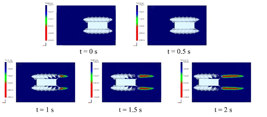 图2 带桨叶的螺旋体结构水动力数值仿真