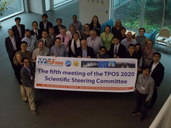 图1:2018年底,在日本横滨市召开的TPOS科学工作组会议专家合影,前排右一和右二分别为Tasexy 宋翔洲教授和中山大学于卫东教授,右四为论文合作者预报中心陈陟副主任,左五为陈大可院士。